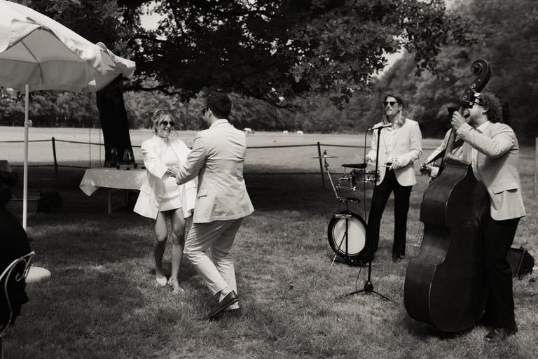 In strolling format, we offer a basic package of three 35/40-minute sets spread out according to your wedding schedule. Generally, one set for the cocktail reception, one set during dinner, and one set to kick off the dance party.